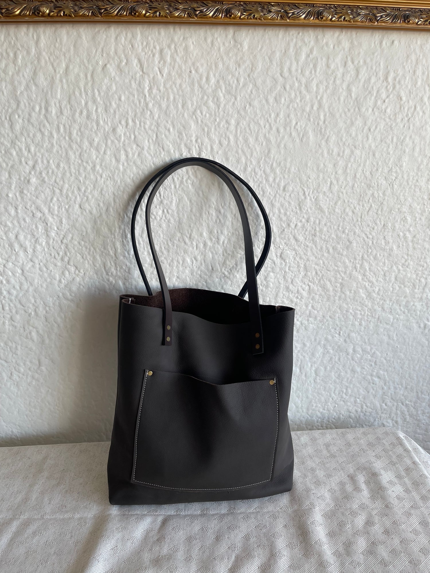 Everyday tote or shopper bag made from thick full grain genuine leather. It is the most versatile handbag for women of all ages.
