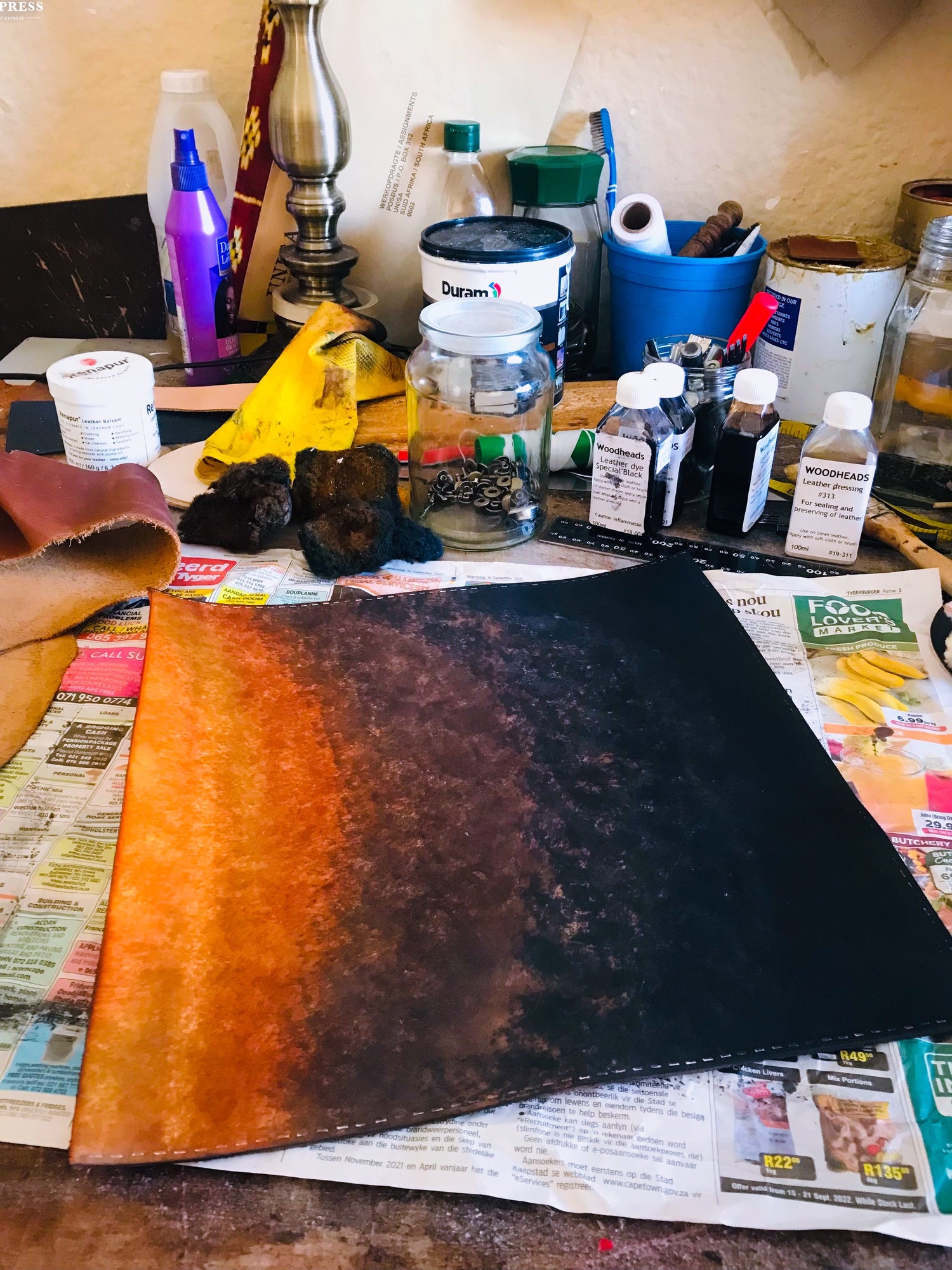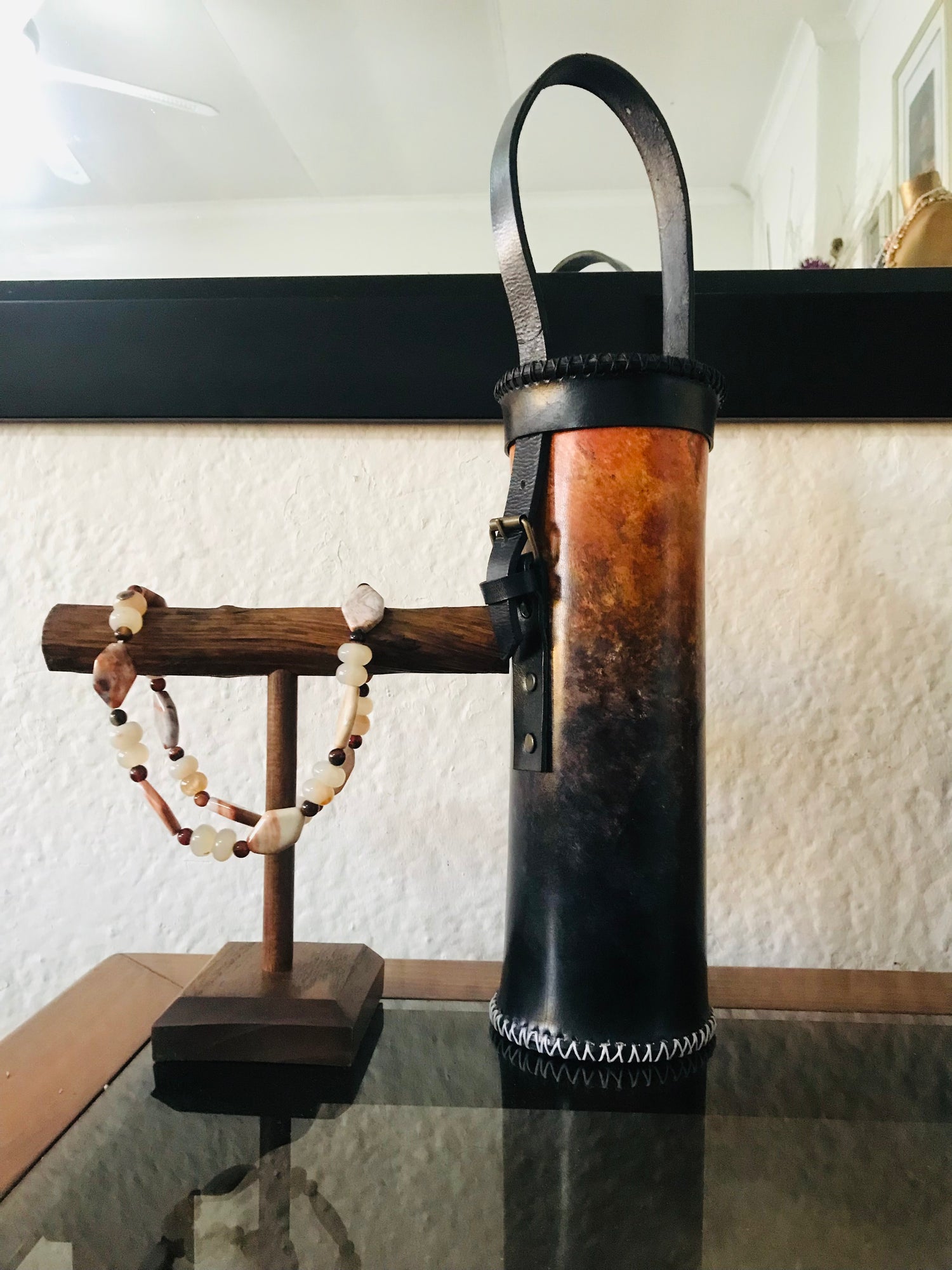 Hand-painted, handcrafted genuine leather wine bag made from veg tan leather. The tote has been saddle stitched for extra durability.